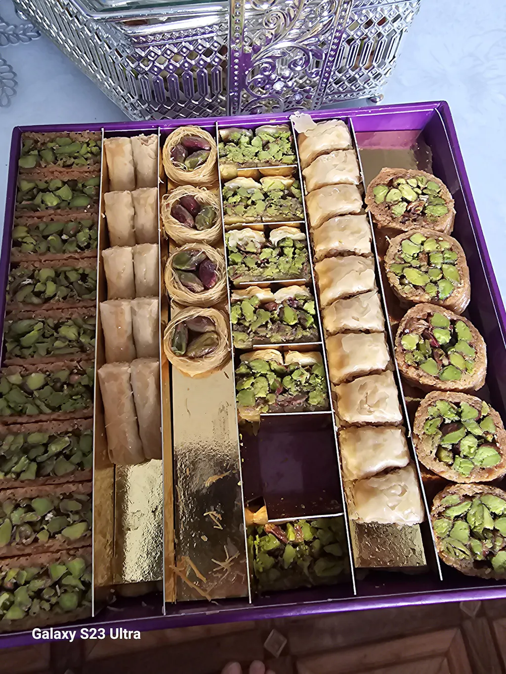 مجموعة من الحلويات اللذيذة المصنوعة من رقائق العجين وبعضها بالكنافة ،